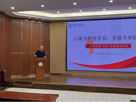 为深入学习贯彻党的二十大和二十届二中、三中、四中全会精神,落实立德树人根本任务,加强和提升辅导员的政治素养、综合素质、职业能力和工作本领,提高辅导员队伍的工作效能,更好地服务学生成长成才和全面发展,2025年10月31日下午2:00,艺体学院在教学科研行政楼一楼文化交流厅组织开展2025年“辅导员沙龙”活动。