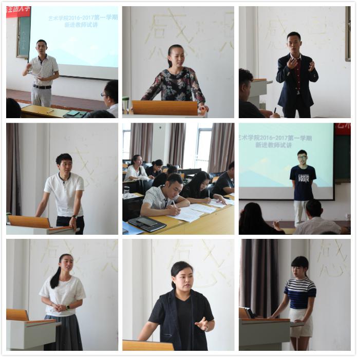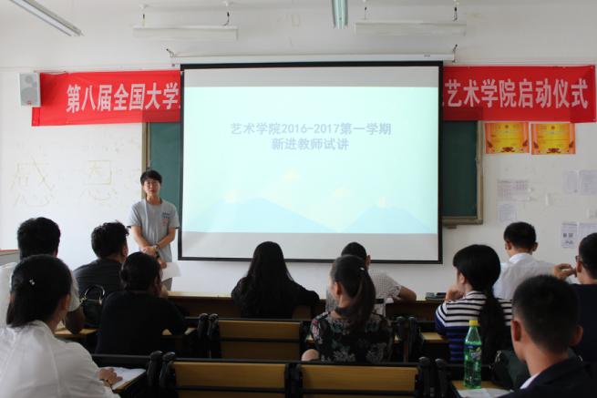 8月30日上午,艺术学院在新校区实训楼305多媒体教室开展新进教师试讲活动。共有七名新教师参加试讲,艺术学院副院长杨钦、文绍军,专业课教师张羽出任评委。每位教师讲课15分钟,然后各位评委填写《艺术学院新进教师试讲评价表》。