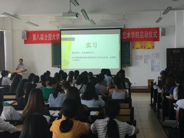 为了使艺术学院2014级的学生所学知识理论、专业知识和基本技能综合运用于实践,我院于8月22日下午在教学楼305教室召开2014级毕业生实习动员大会。大会由艺术学院副院长文绍军主持 。