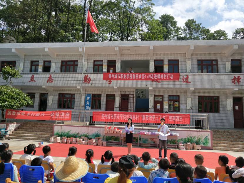 根据省教育厅(关于实施贵州省教育精准脱贫“1+N计划的通知黔教规划发【2018】103号文件和贵安新区管委会纪委2018年4月15日贵安新区党工委委员、纪工委书记朱克乾同志组织召开的关于贵安新区枫林村对口脱贫联席会议精神及工作要求,艺术学院于2018年9月14日组织部分师生深入枫林村,开展了“脱贫攻坚三下乡”慰问演出活动,为枫林村的父老乡亲们送去了精神食粮和国家文化惠民政策的温暖。